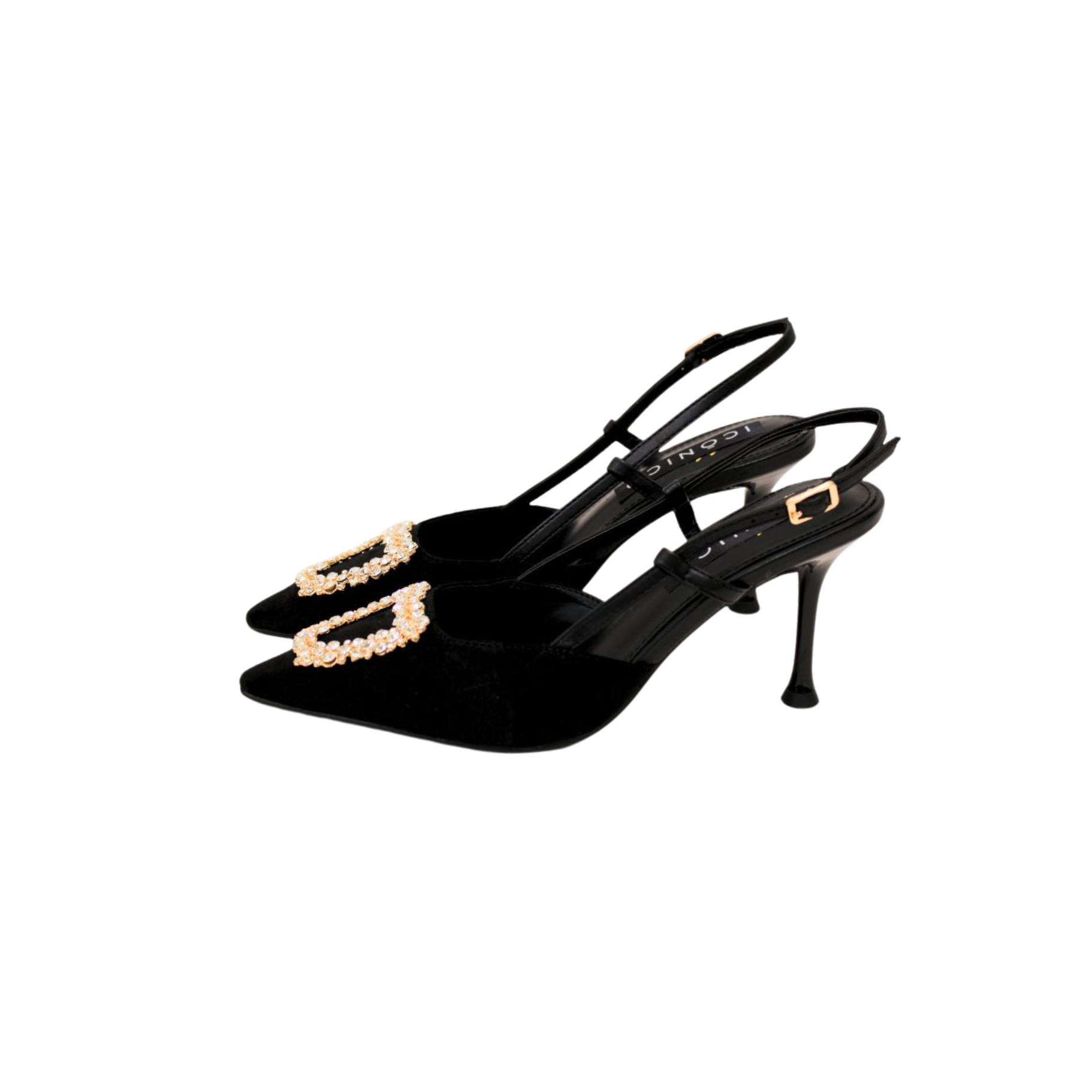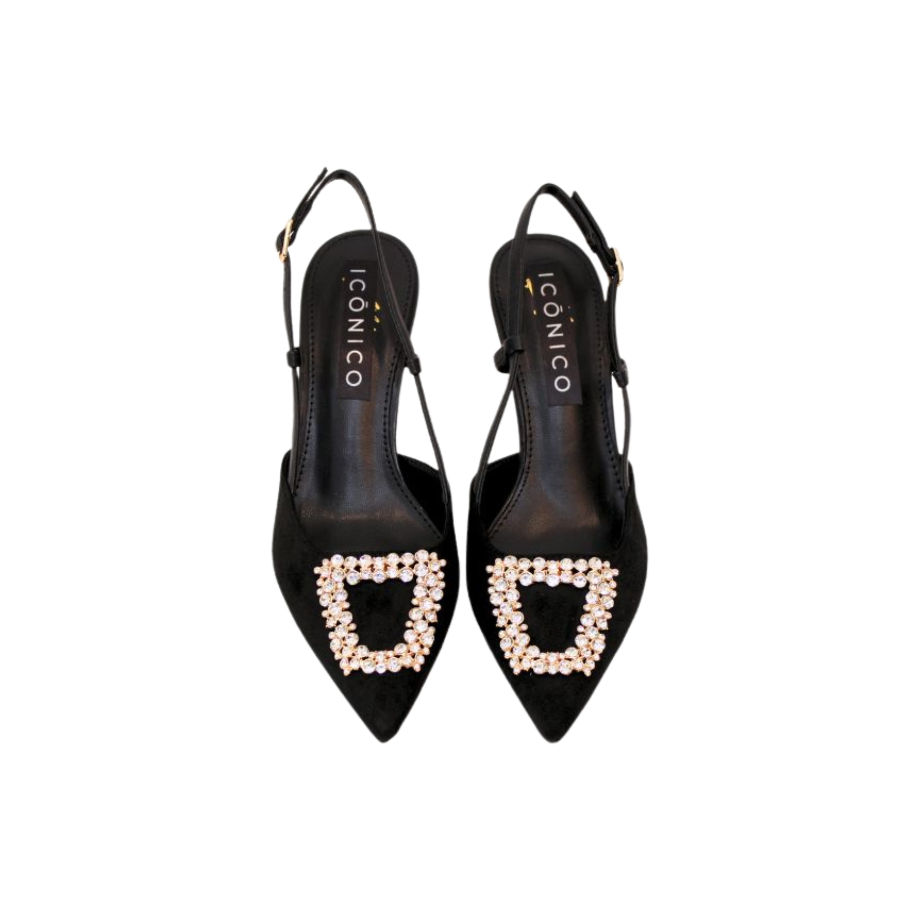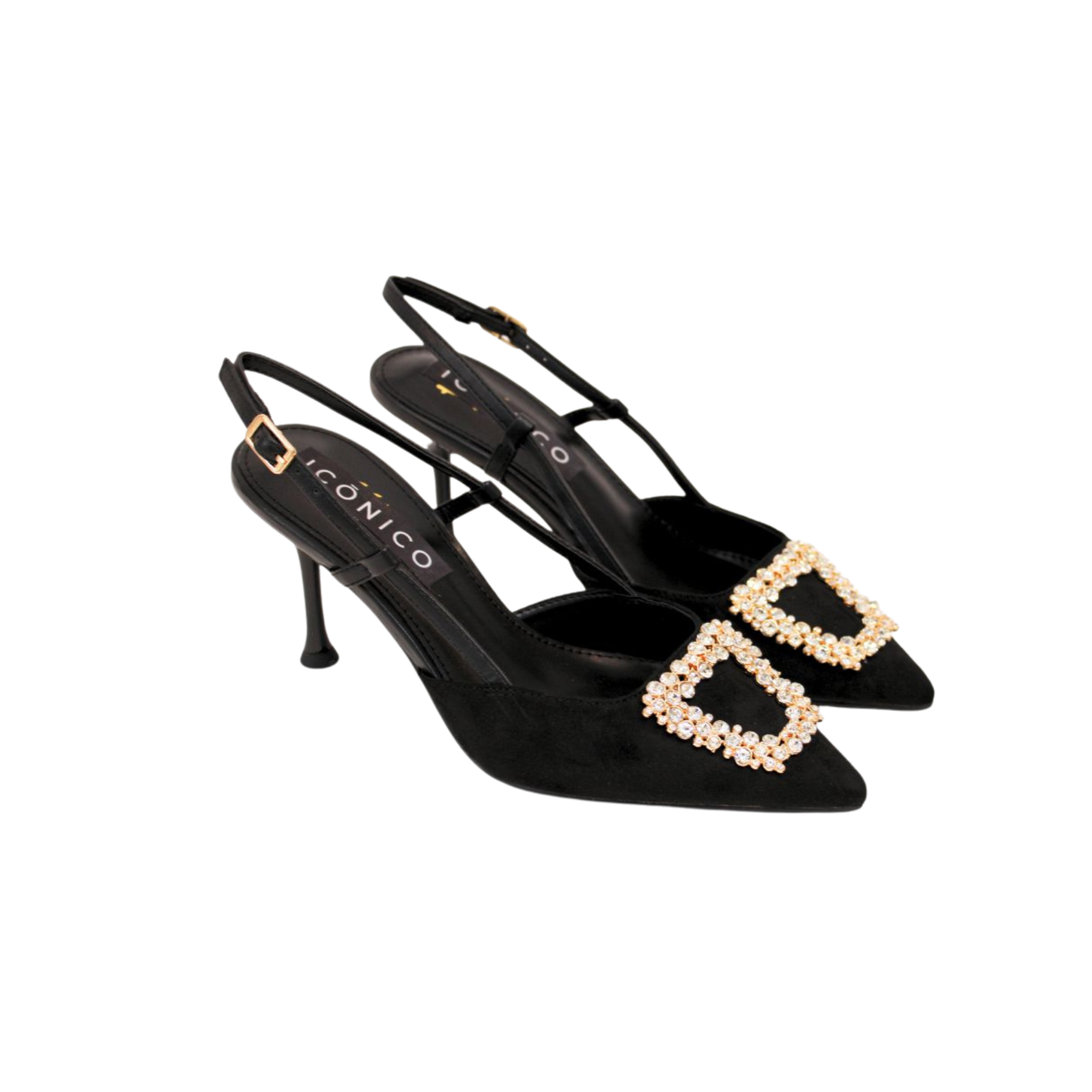 Zapatos con acabado tipo ante y detalles en cristal. Tacón 8cm